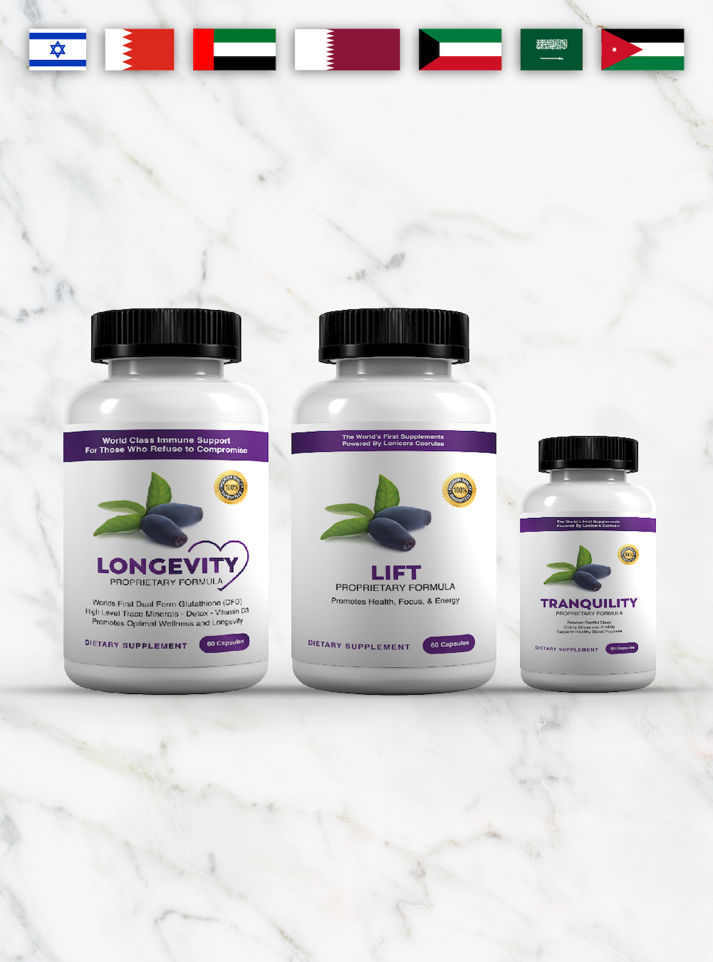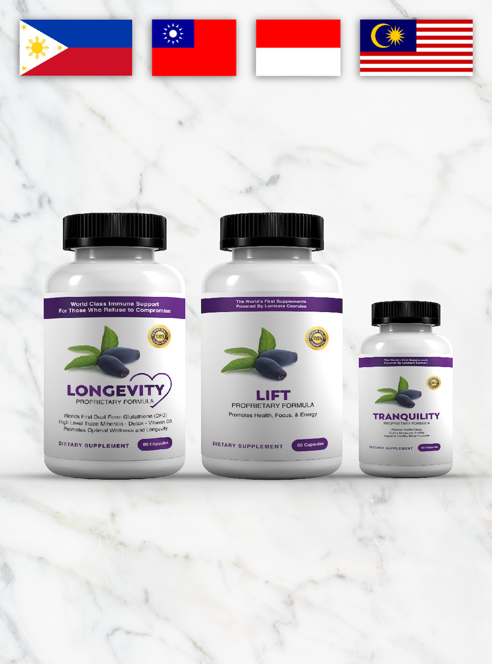 56 CA Tranquility 3 Pak - Pak contains 3 bottles o ... more | 470 PH TW ID MY Longevity 3 Pak - Pak contains 3 b ... more |